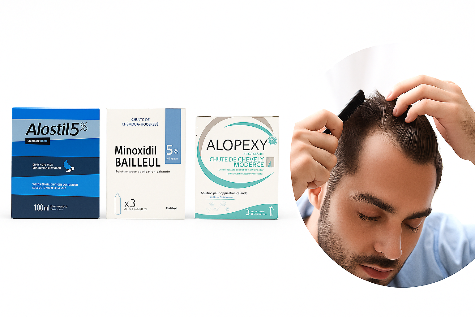 Solutions cliniquement étudiées pour freiner la chute et stimuler la repousse — minoxidil 2% & 5%, lotions et soins complémentaires.